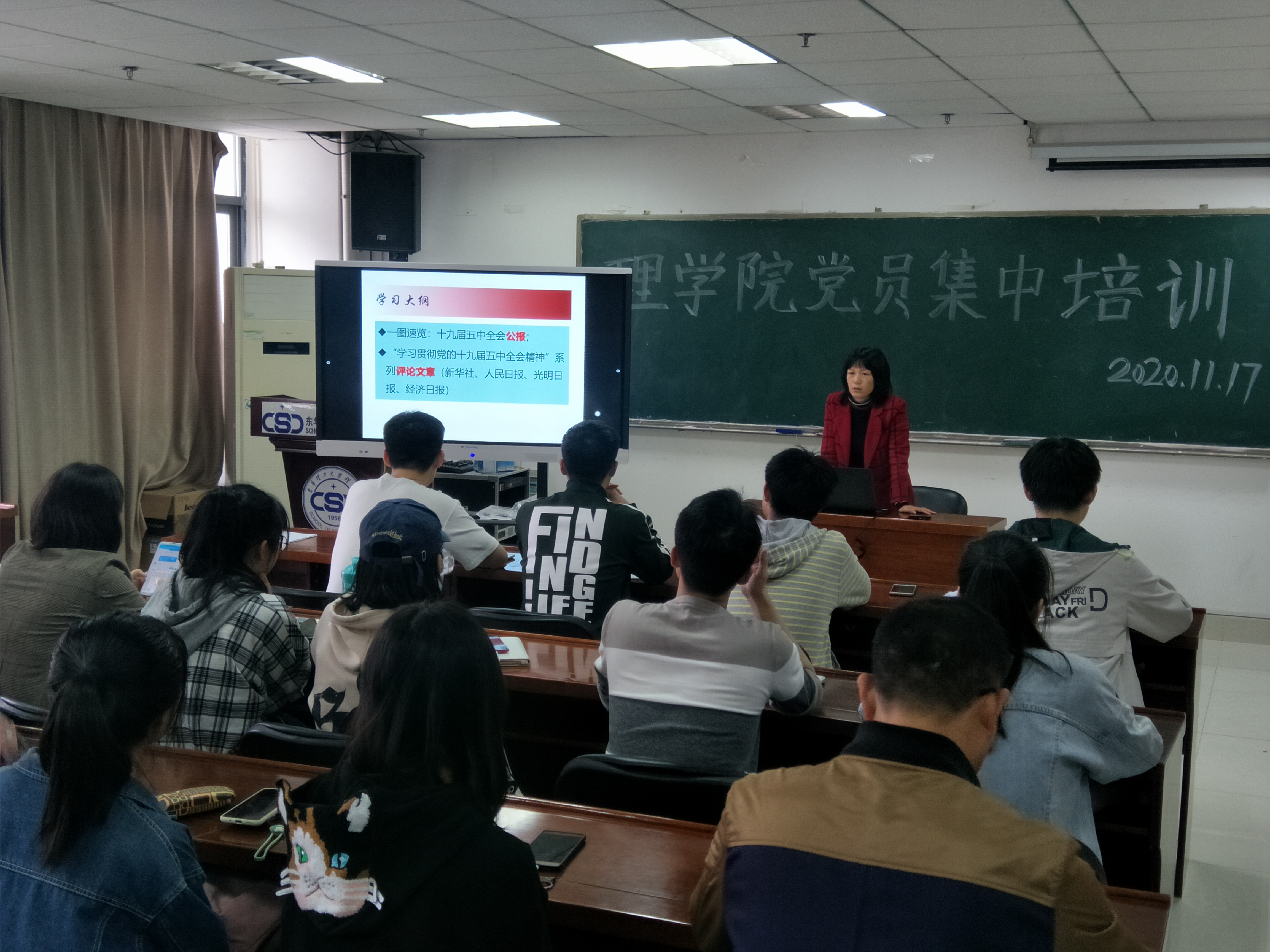 为贯彻落实中共中央《关于巩固深化“不忘初心、牢记使命”主题教育成果的意见》,按照《2019-2023年全国党员教育培训工作规划》规定,根据校党委组织部的统一部署,2020年11月17日下午,理学院党委组织全院教工、学生党员在核工楼1216报告厅开展了第五次集中培训工作,本次培训由理学院学团办主任、数学专业学生党支部书记胡康秀同志主持。