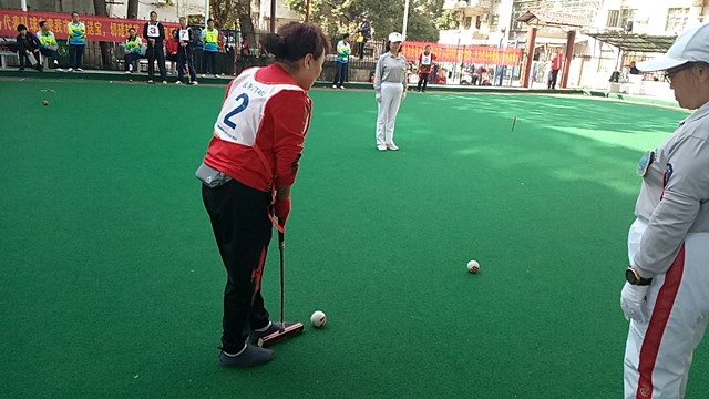 在后三名的对决中,我校门球队分别对阵南铁和谐队和赣州安远队。由于教练员战术运用得当,队员上下齐心,稳扎稳打,技战术水平得到充分发挥,以19:12大胜江西门球名星队——南铁和谐队(该队曾多次获全省冠军,此次比赛最终获第二名)。