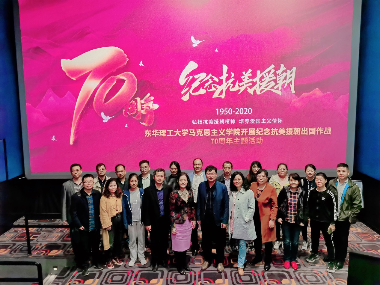为纪念中国人民志愿军抗美援朝出国作战70周年,深入学习习近平总书记《在纪念中国人民志愿军抗美援朝出国作战70周年大会上的讲话》精神,弘扬伟大的抗美援朝精神,11月17日,马克思主义学院党总支组织全体教职工和研究生党员观看电影《金刚川》。