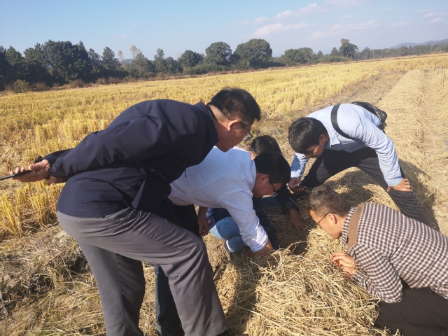 下午科技特派团成员走访了增田镇带陂村大球盖菇冬闲稻田覆土栽培基地,调查了栽培环境、栽培料菌丝生长情况,并向栽培农户就后续的水分管理提出了可行建议。