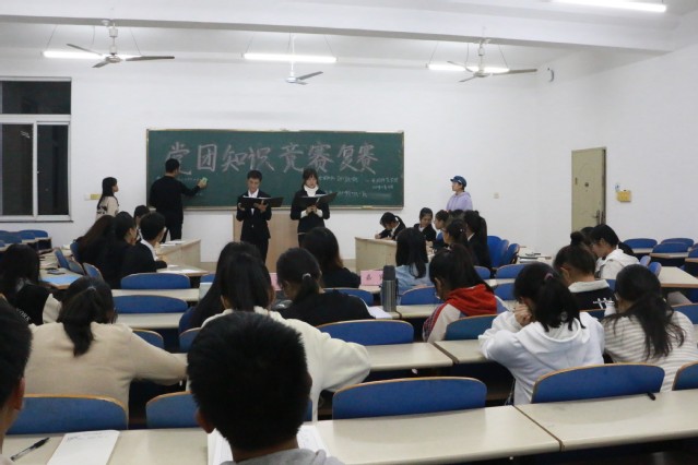 本次党团知识竞赛复赛由个人必答题、团队必答题、风险题和急速抢答四个比赛环节组成。比赛题目横跨了党团知识、古典诗词、新闻实事、疫情防控、文学常识等各个知识层面。在复赛现场,各队选手准备充足,对答如流,尽情展示自身丰富的党团知识和文学常识等,选手们的积极表现和团结协作的精神赢得了在场观众的掌声。
