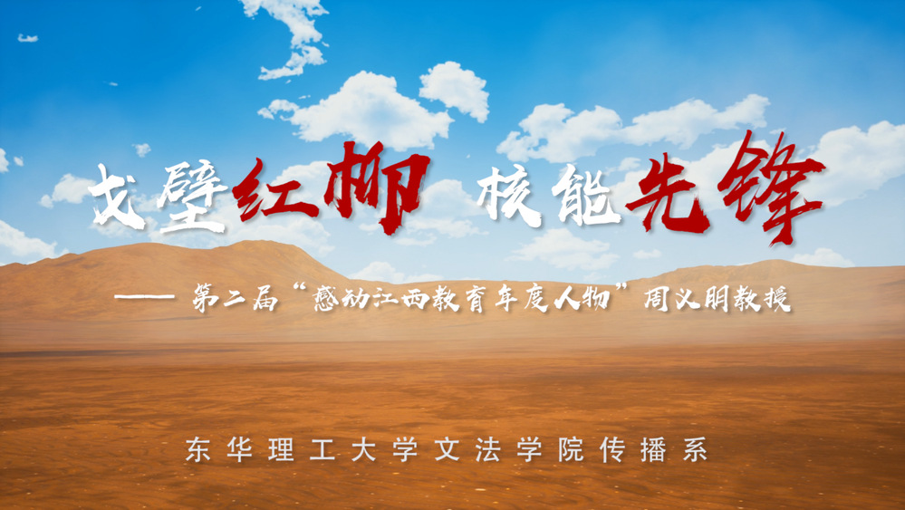 “一位地质科研工作者在新疆戈壁坚守了十三个春秋,默默耕耘,只为开发被誉为‘核工业的粮食、战略核力量军工基石’的铀矿资源;把论文写在远边大地,把课堂搬到新疆戈壁,周义朋十年如一日,就如戈壁滩上的红柳,把自己的根深深扎在了祖国边疆,扎根在他钟爱的铀矿开发事业中……”对祖国的忠诚就是最大的孝,对事业的坚守就是最赤诚的心。从“戈壁红柳”到“核工巨匠”,短视频中介绍了周义朋教授如何克服戈壁滩的恶劣环境、如何临危不惧地应对突发状况、如何为祖国的发展默默付出。东华理工大学周义朋教授的先进事迹,体现了一代东华理工人在这艰难奋斗史中的艰苦卓绝,他的“红柳”品质是对核军工精神的不断传承和发扬,正是他不畏艰苦、为国奉献的精神,感动了无数人,获评第二届“感动江西教育年度人物”。