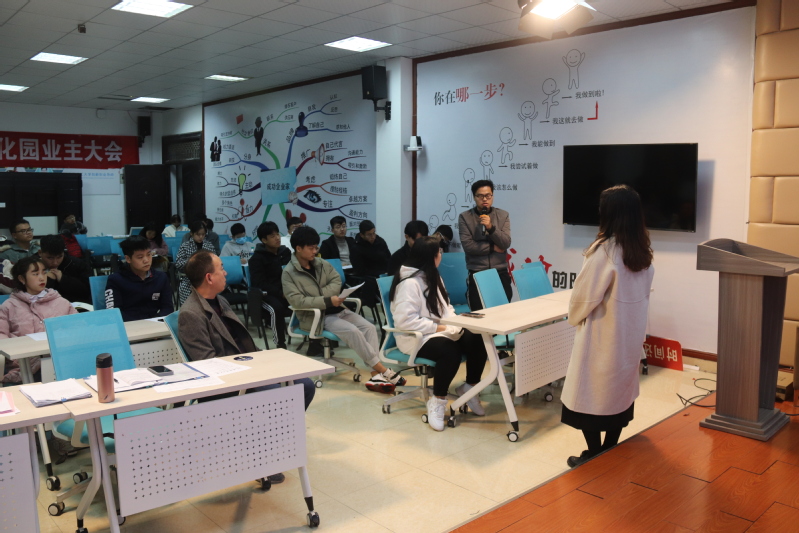 会上,部分业主分享了好的创业经验,并就孵化园开放时间、考核、维修等问题进行了交流。