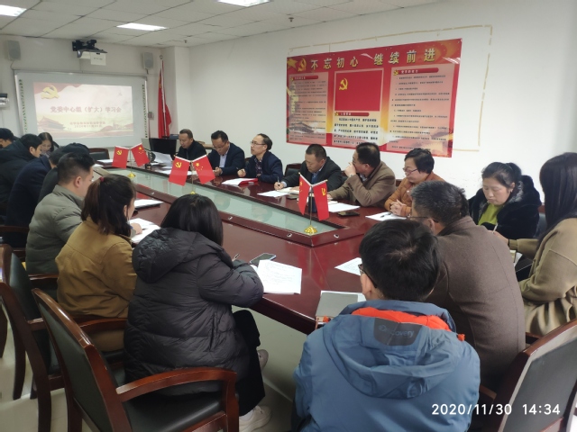 2020年11月30日下午,化学生物与材料科学学院在核工楼510会议室召开2020年第十三次党委中心组(扩大)学习会。学院党委委员、科级干部和党支部书记参加会议,学院党委书记余修日同志主持会议。