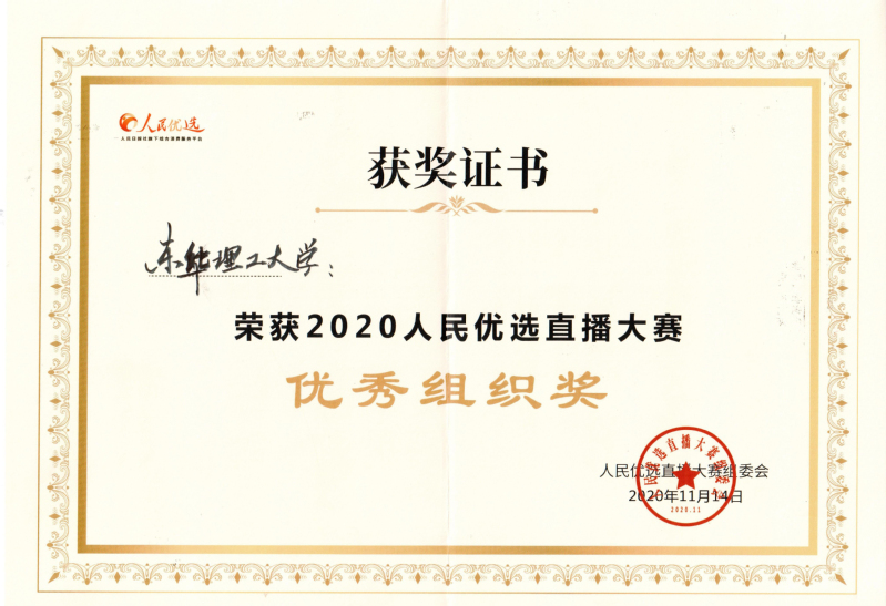 颁奖仪式上,对活动中表现突出的个人和集体进行了表彰,学校经管学院吴熹、水环学院皮欣苒同学获得“2020人民优选直播大赛最具风采奖”荣誉称号,我校被评为“2020人民优选直播大赛优秀组织奖”,王合义作为优秀组织奖代表在北京会场作了发言。