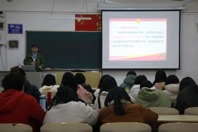 陈平辉讲授了题为《学习新党章,实践新党章》解读的专题党课。他从党章是党的根本**、是把握党的正确政治方向的根本原则、是全面从严治党的根本依据、是党员加强党性修养的根本标准等十二方面具体阐述了党章的基本内容。他强调学习党章是青年学生的进步之道、入党之道,同学们要掌握学习党章的基本方法,秉持历史唯物主义和辩证唯物主义的观点,通过读原文、把握学习的重点章节和内容等,对党章内化于心、外化于行。