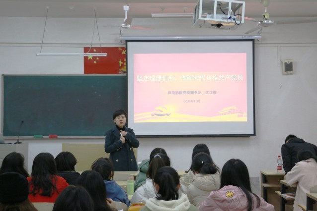 江汶俊以《坚定理想信念,做新时代合格党员》为主题进行了党课讲授。课上,她强调了坚定理想信念的重要性,并从不忘初心使命、坚定理想信念、始终忠诚担当、练就过硬本领、力争创造创新和切实奉献为民六个方面指出坚定的理想信念是面对各种考验的精神支柱,是开创美好未来的强大动力,告诫同学们在平时学习生活中,要身体力行,以党员的标准要求自己,发挥党员先锋模范作用。