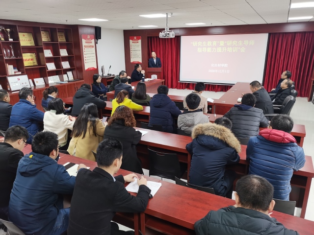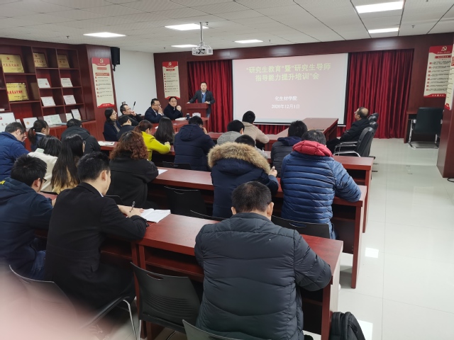 为全面贯彻落实全国研究生教育会议和江西省《关于全面落实研究生导师立德树人职责的实施意见》的相关精神, 12月1日我院组织召开了“研究生教育暨研究生导师指导能力提升培训会”。学院全体领导和研究生导师参加会议,会议由副院长谢宗波主持。