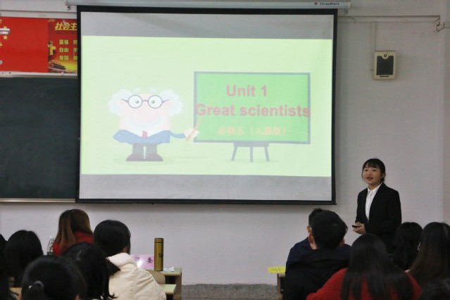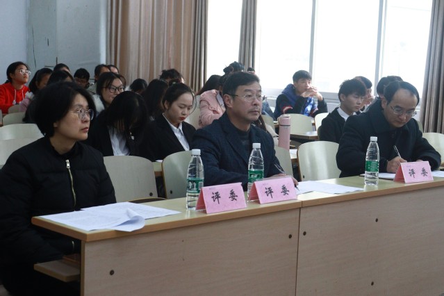 比赛开始后,参赛选手们根据自己的教案设计,从教材分析、学情分析、目标分析、重难点分析、学法和教法等几个方面进行现场说课。各参赛选手条理清晰,教学过程设计合理、语言表达准确生动、各具特色的教学方法、自信满满的教态赢得了台下的阵阵掌声。此次教学技能大赛还重点将课程思政情况纳入到评分体系当中,同学们根据专业和学科特点,深入挖掘课程中的思政元素,提升“课程育人”意识。