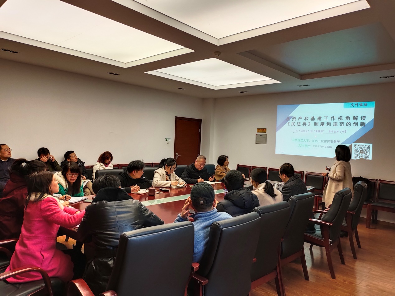 支部邀请了师范学院法学博士、抚州市《民法典》宣讲团成员文竹老师作了题为《从资产和基建工作视角解读〈民法典〉制度和规范的创新》的专题辅导报告。文竹除了介绍《民法典》的编纂历程、体例和颁布意义,重点结合资产处和基建处工作的实际情况,选取近年涉及买卖合同、租赁合同和建设工程合同等有名合同经典案例讲解了合同编的特色和亮点,并细致讲解了合同订立形式新规、如何规避合同成立地点不确定等法律风险。文竹还结合校内房产的实际情况,讲解了《民法典》新增居住权制度、抵押财产范围和抵押财产转让规则等物权编的亮点和对资产管理工作可能带来的变化给出相应的法律建议。讲座过程中,老师们结合主讲人举出的案例展开热烈的讨论,现场互动和学习效果好。