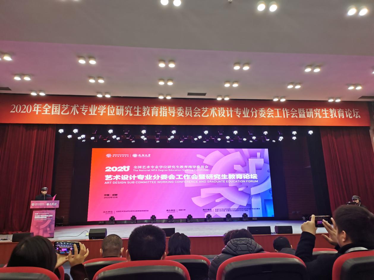 2020年全国艺术专业学位研究生教育指导委员会艺术设计专业分委会工作会暨研究生教育论坛于2020年12月5日-6日在成都大学召开,全国近150所相关院校共300余人齐聚富有厚重巴蜀文化底蕴的天府之国,我院教师邓少波、王宾旗、罗碧娟等5位教师参会。