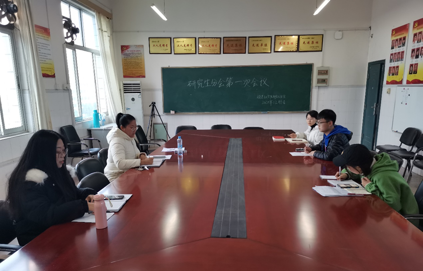 会上,李金花老师对研究生分会的成立、工作职责、管理制度等情况做了简要介绍。接着,与会成员围绕开展读书会、举办学术沙龙、参观红色基地为主题进行交流讨论。