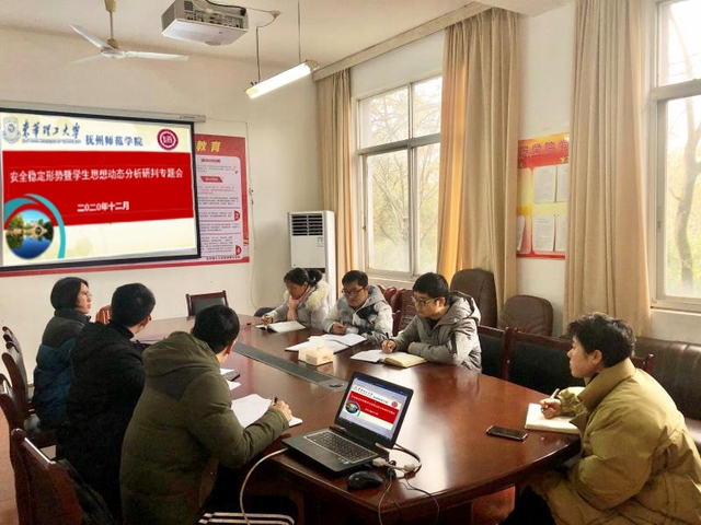 12月16日上午10点,师范学院在抚州校区学府校园行政楼339会议室召开2020年度末安全稳定形势暨学生思想动态分析研判专题会,学院党委副书记江汶俊出席会议,学院学团办、研管办全体老师、各年级辅导员参加会议。会议由学团办黎军华老师主持。