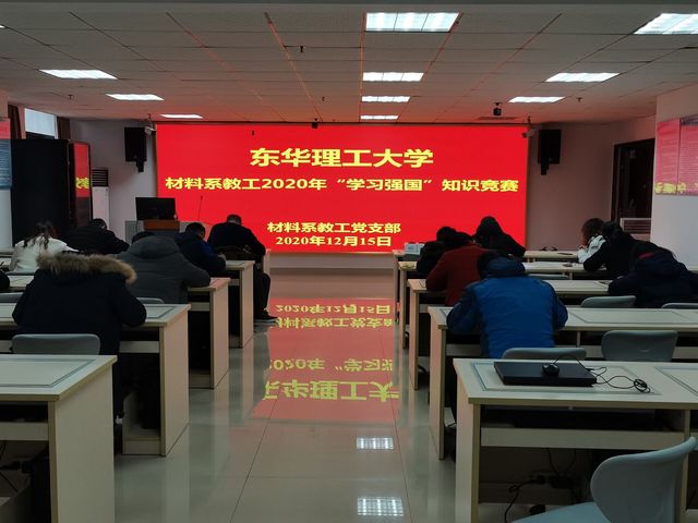 为认真贯彻落实党的十九届五中全会精神,明确党对教育事业的方针政策,切实抓好材料系教工师德师风建设,牢记教师责任与使命,材料系全体教工于2020年12月15日举行了“学习强国”知识竞赛。学院领导高度重视,并对本次比赛活动进行了指导,同时得到院工会的大力支持。
