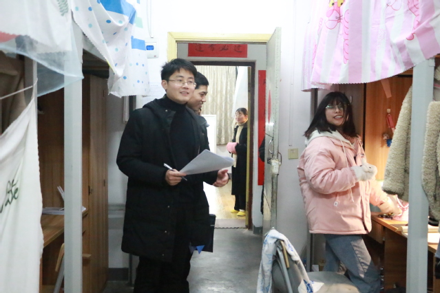 在学生宿舍,老师们认真的查看了安全和卫生状况,并亲切地询问了同学们的学习和生活近况,叮嘱同学们天气寒冷要注意做好防寒保暖。在得知同学们近期在为考试做准备时,老师们还鼓励大家不要紧张,沉着应对。同学们与老师相谈甚欢,天气虽寒,宿舍内充满温情。