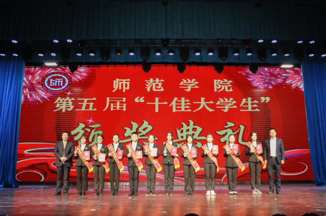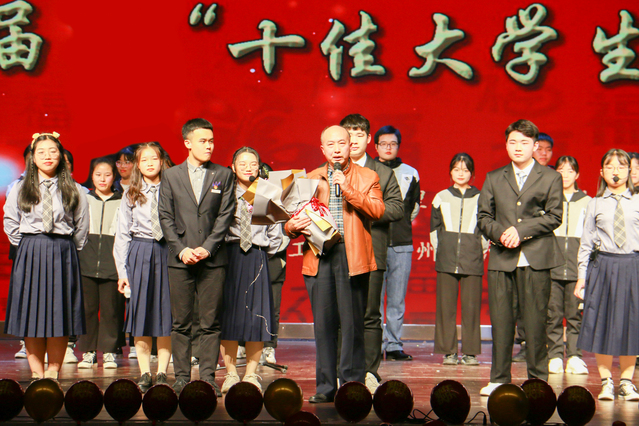 期间,刘紫春和刘云海为我院第五届“十佳大学生”颁奖,并合影留念。