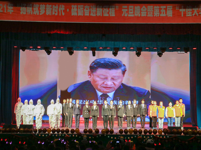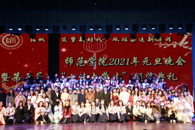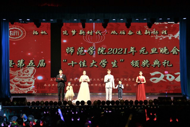 12月28日晚7:00,师范学院2021年"扬帆筑梦新时代·砥砺奋进新征程”元旦晚会暨第五届“十佳大学生”颁奖典礼在抚州校区大礼堂隆重举行。校党委副书记刘紫春、副校长刘云海出席晚会。统战部、学工处、校团委、保卫处、离退休工作处、勘察院、抚州校区管委会以及抚州校区各院系等相关领导和老师参加了本场晚会,一千余名师生欢聚一堂,共庆元旦。