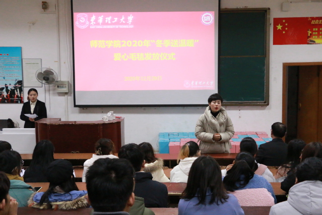 2020年12月29日下午,师范学院于信工楼阶七教室开展2020年“冬季送温暖”爱心毛毯发放仪式。出席本次活动的有副院长陈火弟、党委副书记江汶俊、学团办老师以及受资助的贫困生参加。