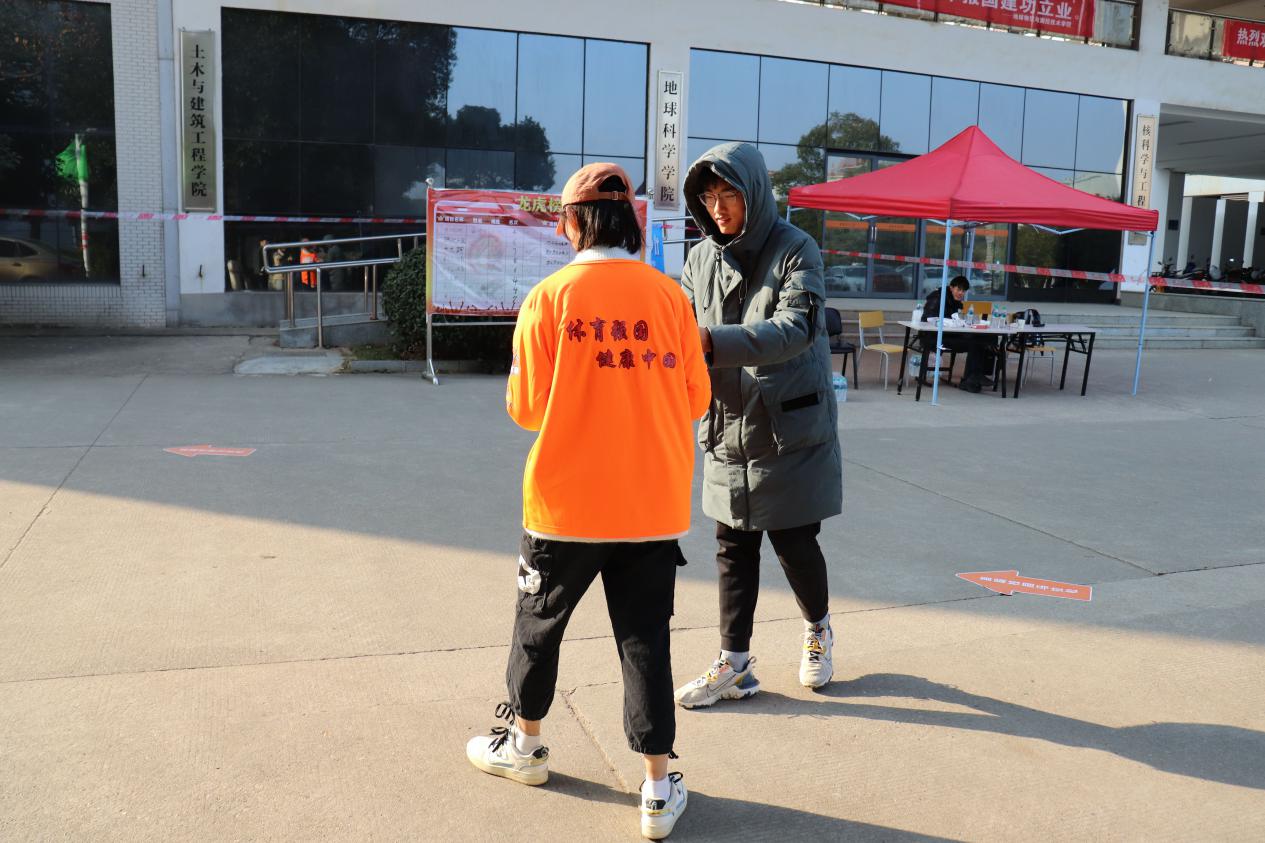 场内运动健儿们努力拼搏,场外啦啦队和志愿者**呐喊,热情服务。我院的志愿服务点设在地学楼门口,志愿者们为奔跑来的运动员加油打气,并亲切地递上一杯水。我院终点工作人员的加油助威声此起彼伏,他们贴心备好了衣物和矿泉水,为我院的运动员服务。