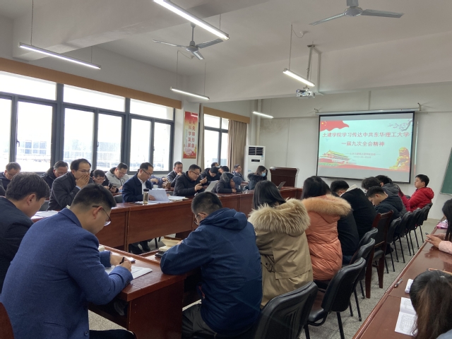 2020年1月5日下午,土木与建筑工程学院于地学楼A611室召开中共东华理工大学第一届委员会第九次全体会议精神专题学习会,学院领导班子、全体教职工参加了会议。
