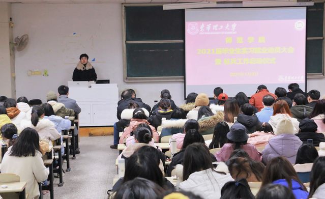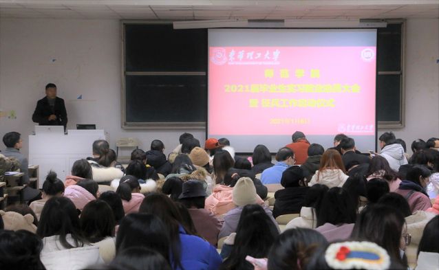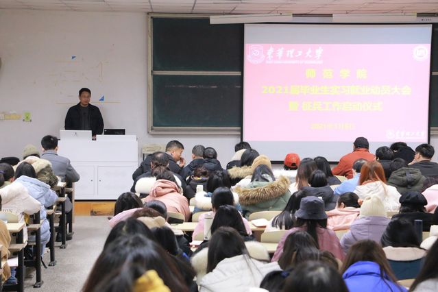 1月6日下午15:00,师范学院在抚州校区学府校园阶14教室召开2021届毕业生实习动员大会暨征兵工作启动仪式。学院党政领导、各专业系主任、学团办、教科办负责人、2021届毕业班辅导员、班主任和全体毕业实习指导教师及2021届全体毕业生参加了本次会议。会议由学院教科办主任司红伟主持。