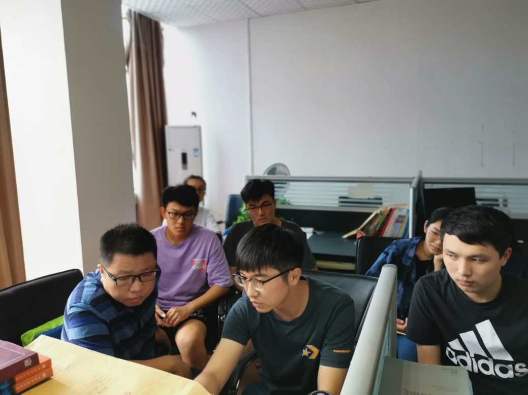 张军老师利用周末时间指导学生参加竞赛(左一)