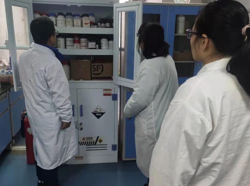 检查过程中,肖主任重点对实验室化学药品和实验室安全用电情况进行了清查;并对化学药品的进出入库登记、存放、管理、以及废液的处置程序做了详细的核查。