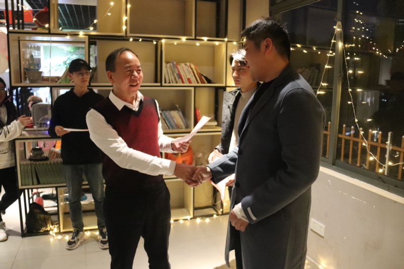 王合义在致词中简要回顾了一年来大学生创业孵化园的发展,介绍了目前大学生创业孵化园的基本情况,并对各项目团队能够严格按照学校疫情防控要求和孵化园管理规定做好项目运行给予了肯定。希望创业孵化园广大业主在新的一年里发挥主人翁精神,把孵化园作为创业者的“家”来爱护;增强创新创业精神,把自己当成“创业家”来培养和锻炼;加强联合和资源对接,发挥“大家庭”的合力,共同进步和发展。