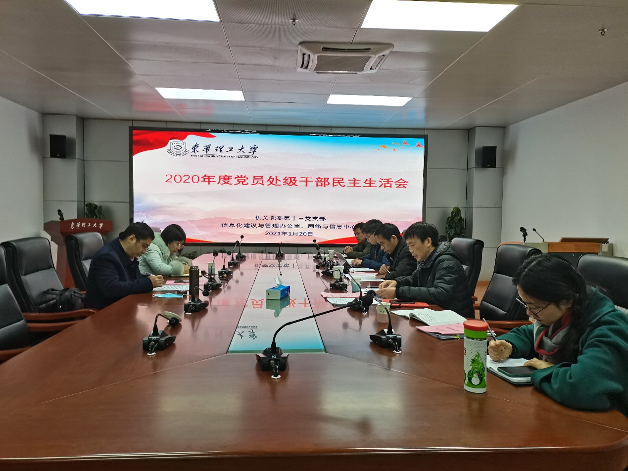 1月20日上午,机关党委第十三党支部在南昌校区图书馆C301室召开2020年度党员处级干部民主生活会。校党委常委、党委宣传部部长江光亮,水资源与环境工程学院水文与水资源工程系主任马文洁到会指导。部门处级领导班子、党支部委员参加会议,科级党员干部列席会议,会议由支部书记李卫东主持。