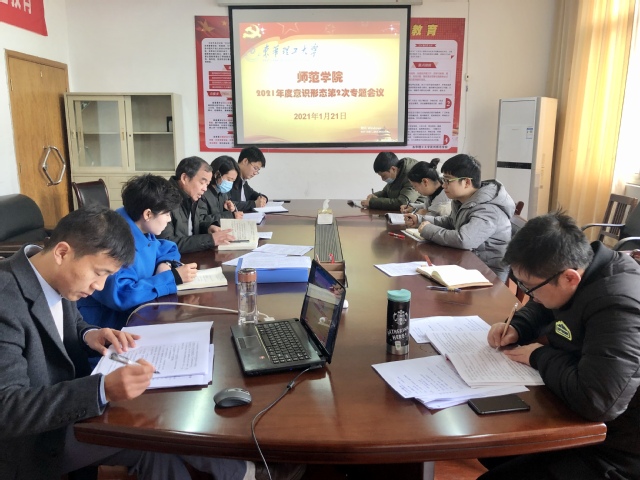 1月21日上午,师范学院在抚州校区学府校园行政楼339会议室召开2021年意识形态工作第2次专题例会。学院领导、党政办、研管办、学团办等负责同志和辅导员参加会议。会议由学院党委书记章国平主持。