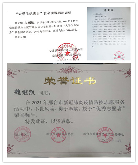 寒假期间,艺术学院学子纷纷投身家乡志愿服务中。只要有需要,他们便挺身而出进,不计较个人得失,以百分之百的精力投入到家乡志愿服务中。据统计,学院近二百名学子加入了当地志愿服务队伍,从事测量体温、村口站岗、道路交通管理、社区消毒、暖心春运、帮助留守老人、关爱留守儿童等志愿服务。