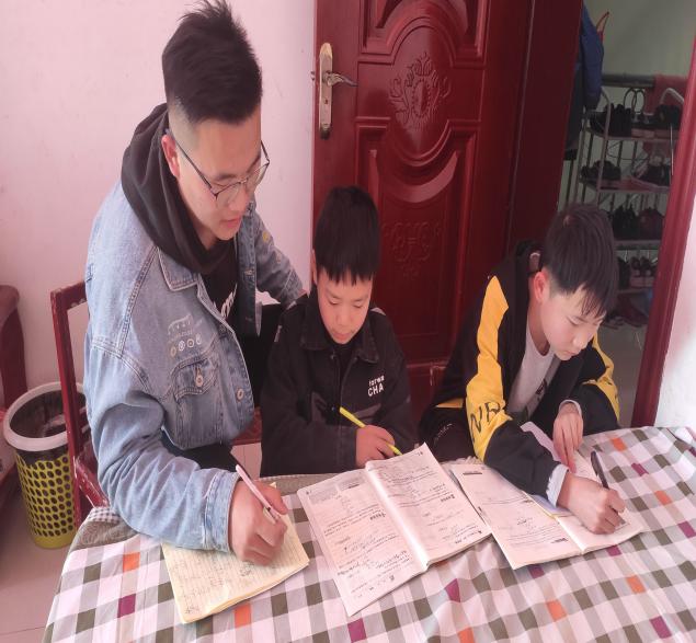 山东籍学生廖朗看望留守老人,为当地儿童辅导作业、教授美术