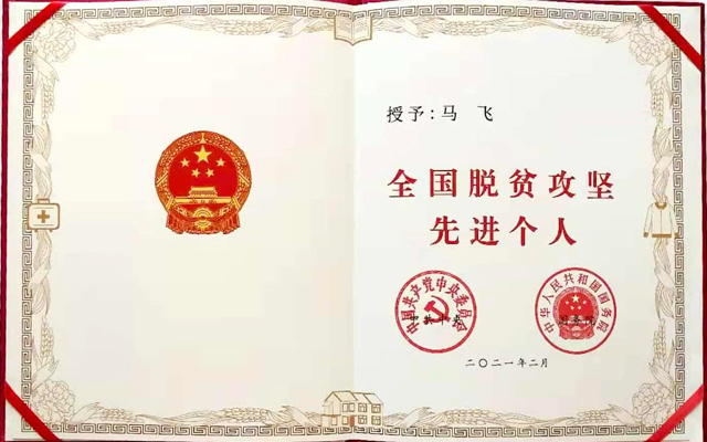 2019年3月,马飞到围场满族蒙古族自治县元宝洼村任第一书记。在派出单位和地方各级党委政府的正确领导和大力支持下,马飞认真履行驻村第一书记职责,紧密团结带领村“两委”班子和广大群众,深入开展扶贫脱困工作,并取得了显著成就,元宝洼村2019年底整体脱贫出列。