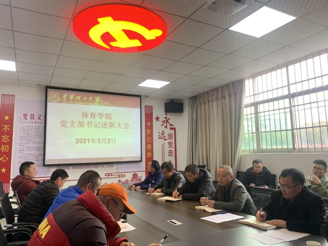 3月2日下午,体育学院党委在体育馆一楼党员活动室召开基层党支部书记述职大会,会议由院党委书记张明主持,学院基层党支部书记、所有教工党员、学生党员参加了此次会议。