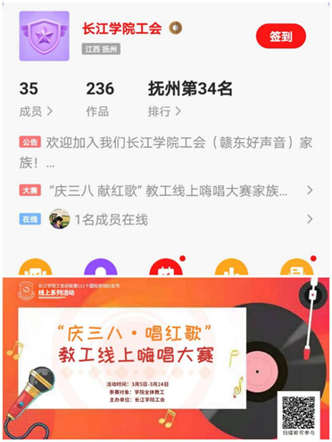 3月5日-24日,院工会开辟线上教工K歌平台,举办线上嗨唱红歌大赛,活动期间,教工从学院“百首红歌征集曲库”选取演唱曲目,或选唱积极向上正能量的歌曲,发布在“长江学院工会线上K歌房”,参加投票排行。目前活动正在火热进行。教工们认为这种活动形式不限时空、新颖潮流,极大丰富了教工们的业余生活,相互加深了了解,加强彼此的交流沟通,营造了良好的职工文化氛围。