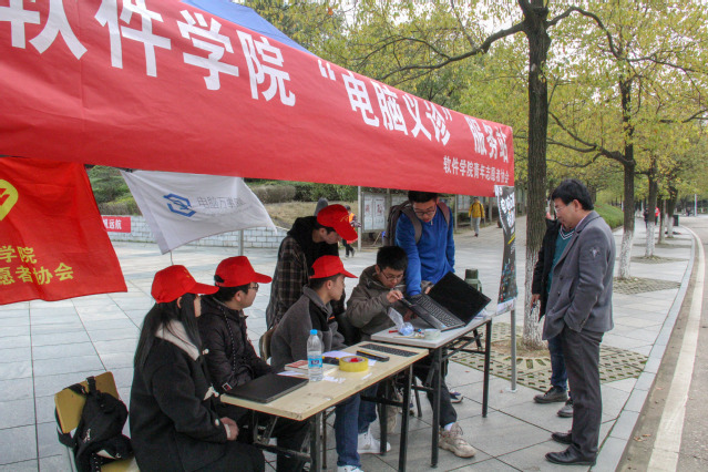 3月9日下午,软件学院青年志愿者协会在广兰校区青春广场设立点位开展“电脑义诊”志愿服务活动,免费为全校师生维修电脑。软件学院党委副书记许志文带队看望了志愿者。许志文详细询问了志愿服务队活动开展情况,并对服务队的志愿精神给予了充分肯定。同学们表示能够运用所学专业知识服务师生非常开心,表示要进一步提升专业技能,更好地服务师生。“电脑义诊”一直以来是我院的特色志愿活动,自2014年开展以来已累计为600名师生服务,累计招募参与志愿者500余人,活动得到了广大师生的肯定,多次获得校团委“优秀志愿服务项目”。