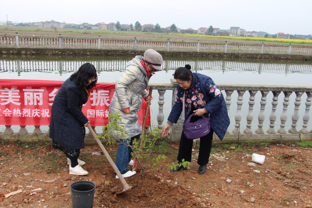 13日上午,女教工冒雨乘车前往徐家村,经过2个半小时的车程终于到达了目的地。一下车,各位女同志都没顾得上休息,纷纷冒雨扛起锄头,挖坑、插苗、培土、浇水,分工合作。经过近1个多小时的劳动,共栽植樱花、枇杷树苗60株,放眼望去,一排排生机盎然的“巾帼林”已然形成。大家用实际行动为美化村容村貌、打造人居环境、助力乡村振兴贡献了一份力量。植树活动后,在驻村第一书记吴小龙的带领下,广大女教师参观了徐家村的村容村貌,通过吴书记的介绍,大家对徐家村焕然一新的村容村貌表示赞叹,对学校在助力脱贫攻坚中所做出的贡献表示敬意。