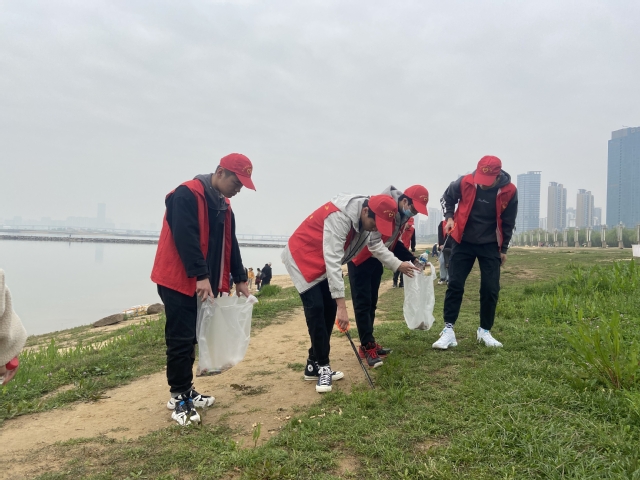 半个小时的车程,志愿者们来到了赣江边,在院团委书记朱天星老师的带领下,身着红色衣服的志愿者们,手拿夹子、垃圾袋等工具,捡拾河边的塑料袋、泡沫板、废弃物等白色垃圾,每处卫生死角都不放过。有的志愿者细心挑拣着河滩上的垃圾,有的向游人倡导、讲解垃圾分类小知识。当日,志愿者们共清理固体废弃物垃圾10袋。虽然天气闷热,但是每个人的脸上都洋溢着笑容。约一小时后,江边恢复了原本的干净模样,志愿者们心中的成就感也随着垃圾的消失和游客的肯定而愈加强烈。