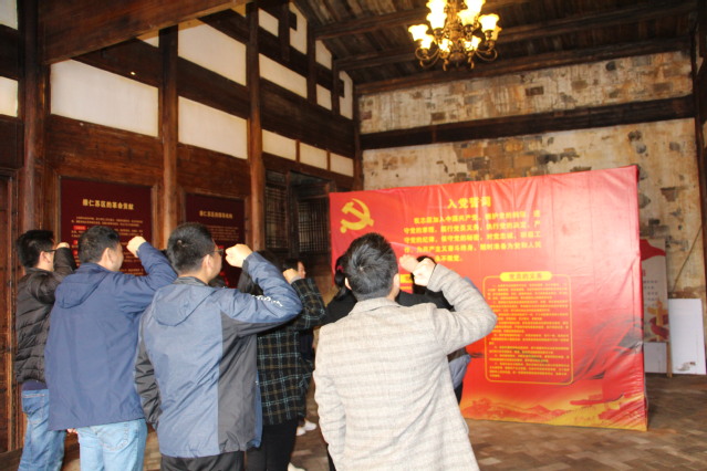 近日,化生材学院应用化学系教工党支部组织全体党员,前往抚州市崇仁县第一个中共支部的诞生地——古塘爱国主义教育基地,开展“学党史励初心,强党性担使命”主题党日活动。