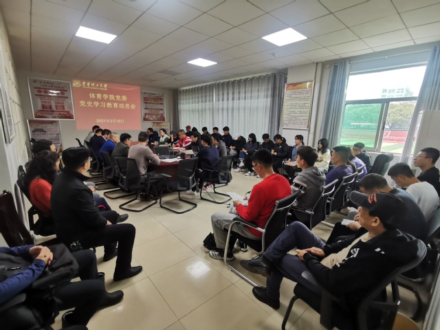 为贯彻落实中央、省委、省委教育工委和校党委关于党史学习教育的部署安排,体育学院党委于3月16日中午在体育馆二楼210会议室召开党史学习教育动员部署会,体育学院领导班子成员、党支部书记、全体教师党员及学生党员参加会议,会议由院长李风雷主持。