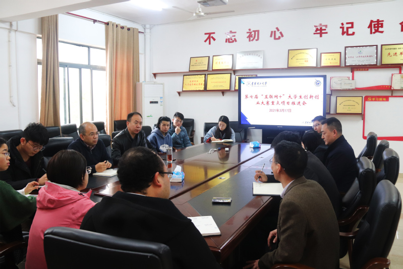 为进一步做好第七届“互联网+”大学生创新创业大赛备赛指导,提高培育项目的质量和竞争力。3月17日,创新创业教育学院在学院308会议室组织召开了第七届“互联网+”大赛培育项目推进会。创新创业教育学院党总支书记王合义、院长王学刚以及学校9支培育项目团队师生参加会议,会议由王合义主持。