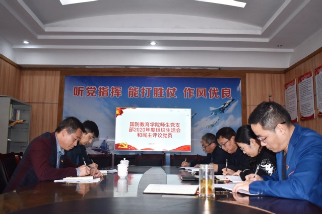 3月16日下午,国防教育学院师生党支部在抚州学府校区行政楼108党员活动室召开2020年度组织生活会和民主评议党员会。会议由师生党支部书记宋建勇主持,国防教育学院党委书记李儒俊、院长赵克锋以及支部全体党员参加了会议。
