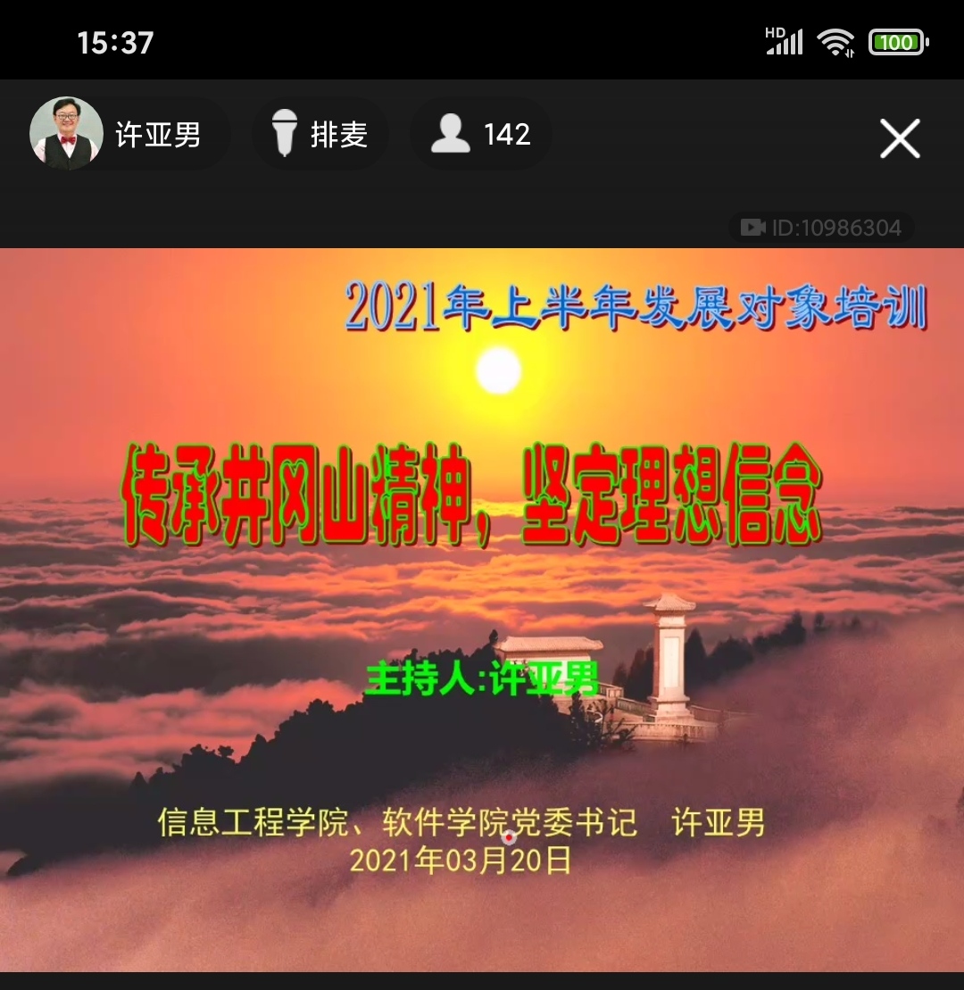 3月20日下午,六家学院的160多名发展对象在网上参加了开班仪式和第一次集中培训。开班仪式由软件学院、信息工程学院党委书记许亚男主持,在开班仪式上许亚男鼓励大家珍惜机会,学好、用好马克思主义,真正做到听党话、跟党走。开班仪式结束后,许亚男结合自己曾经的工作经历,生动讲述了本次培训的第一讲:《传承井冈山精神,坚定理想信念》。