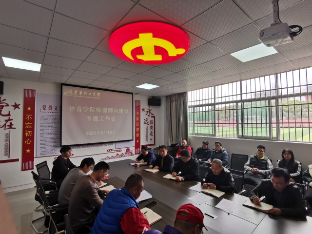 为进一步推进学院师德师风建设,切实提高全院教师师德素养,3月19日中午,体育学院在体育馆一楼党员活动室召开了全院教师师德师风建设专题会,会议由院长李风雷主持,全体教师参加了本次会议。