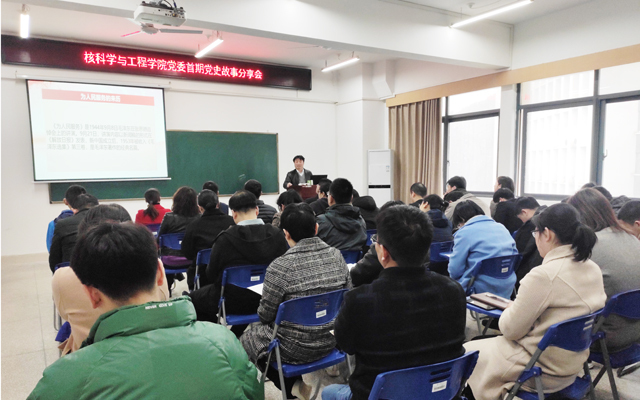 为深入学习贯彻习近平总书记在党史学习教育动员大会上的重要讲话精神,推动“学党史、悟思想、办实事、开新局”党史学习教育落到实处,3月23日下午,核科学与工程学院党委在地学楼c503党员活动室举办了首场党史故事分享会,通过党史故事的讲解,使党员教师做到学史明理、学史增信、学史崇德、学史力行,筑牢信仰之基、补足精神之钙、把稳思想之舵。