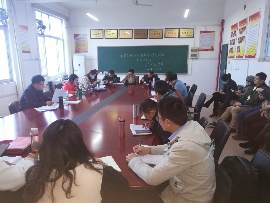 会上,学院党总支书记华启和传达了教育部党组成员、副部长孙尧讲话精神,并深刻解读了《新时代高校教师职业行为十项准则》《教育部关于高校教师师德失范行为处理的指导意见》,领学了学校统一印制的《师德师风文件汇编与师德警示材料》。