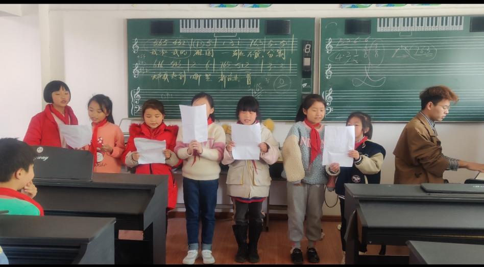 支教学校的合唱团小成员从不敢开口到唱得有模有样,充分展示了农村小学学生良好的音乐潜质,对艺术的热爱之情,也体现了我校音体美大学生过硬的专业素质以及迎难而上的精神风貌,同时也进一步营造了农村学校健康向上的育人氛围。(图/音体美支教学生 文/吴绪杨)