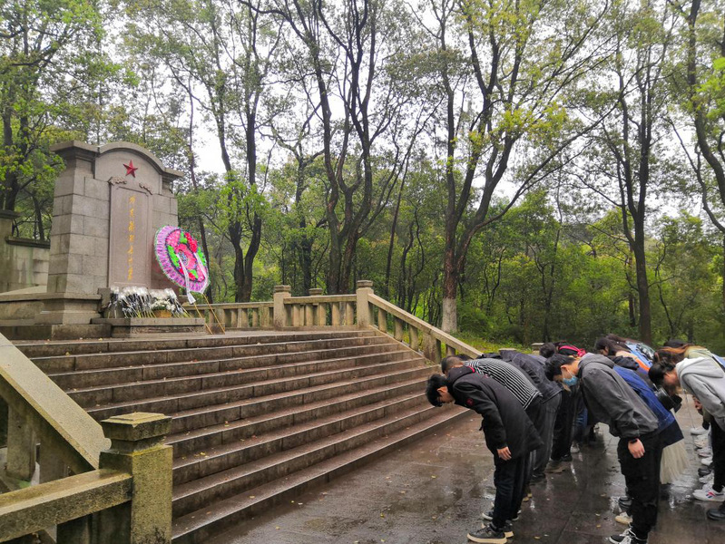 岁岁清明花落枝,绵绵细雨织哀思。迈着沉重的步伐,全体成员列队来到方志敏烈士陵园广场,走向方志敏烈士墓前,敬献花束以表敬仰之意;瞻仰墓碑并缓缓绕行烈士墓一周,以寄哀思之情。