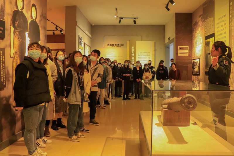 在方志敏烈士纪念馆,全体成员在该馆讲解员唐蓉的带领下进行参观学习。唐蓉同志深情细致地讲解了方志敏烈士的生平事迹,并带领现场成员合唱红歌小调。娓娓道来中,质朴歌声里,在场各位师生深刻感受到方志敏烈士“爱国、清贫、创造、奉献”的革命精神,坚定了为共产主义事业奋斗的理想信念。