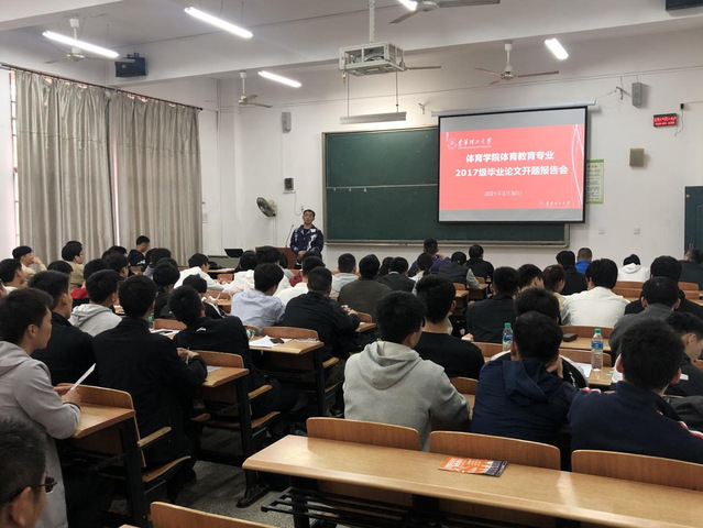 3月30日下午,我院在三号教学楼举行2021届本科毕业论文开题答辩。答辩小组组长由院长李风雷、副院长牟顶红担任,组员由专业骨干教师颉梦宁等6位副教授组成,所有论文指导老师参加了会议。会议由体育教育系主任胡吴进主持。